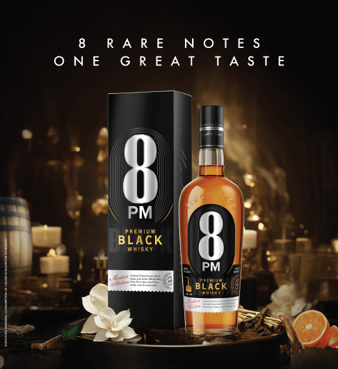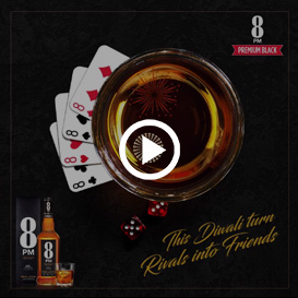 Presenting 8PM Premium Black- India's new premium whisky. It's a Master's Selection for the true connoisseurs of fine taste. This smooth blend celebrates success, friendship and the spirit of camaraderie even among rivals because when shared, even rivals become friends.